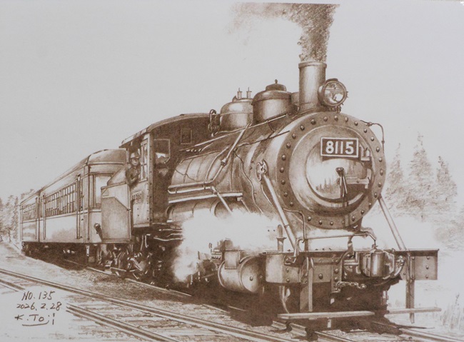 今回のイラストは、アメリカン蒸機、ボールドウィンの2-6-0テンダー機8100です。