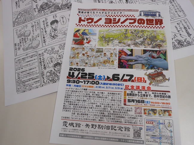 先週末25日から、たつの市龍野町の霞城館(かじょうかん)・矢野勘治記念館で開催されている、播磨が育てたマルチなクリエーター、堂野能伸君の作品展示会に行ってきました。