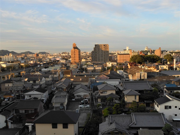 写真は我が家のベランダから南側、午前6時25分の風景です。