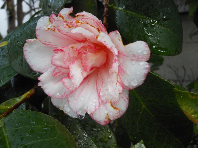 昨日13日の夕、ふと気が付くと当社大椿庭園の椿、蝦夷錦号に二輪今年も早々に綺麗な花が咲きました。
